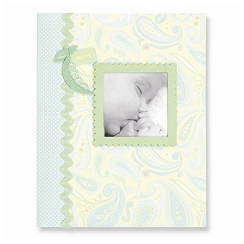 Prompts you to record events and milestones. Gives you room to journal;CR Gibson's keepsake memory book makes it easy to create a personalized baby book that will be treasured;Memory book features a felt pea pod and ribbon on a soft blue and green paisley pattern;A frame to display a favorite photograph;With pages that prompt you to record events and milestones as well as give you room to journal, CR Gibson's keepsake memory book makes it easy to create a personalized baby book that will be treasured;Memory book features superior editorial content with artistic details throughout more than 30 pages to record baby's arrival, homecoming, family tree, first day of school and more;From the jack collection, designed by Anna griffin for CR Gibson, memory book features a felt pea pod and ribbon on a soft blue and green paisley pattern with a frame on the cover to display a favorite photograph check out the entire jack collection;Bound memory book is 9x 11.125and arrives boxed ready for gift giving;CR Gibson has been preserving family memories for 140 years, and no memory is as special as that of our children