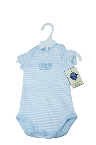 - 魅力的なブルーとホワイトのAngelベビーボディスーツ。