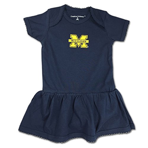 スポーツに、パイントサイズWolverinesファンでこの愛らしいと千と千尋の小さいドロップウエストのドレス、創造的なニットから!この快適な女の子のドレスはフォールドオーバーネック、ピコ、ミシガン州、公式のロゴ、および添付のおむつカバー簡単にスナップで変更されていません。ミシガンファンお気に入りにあなたがかわいい!