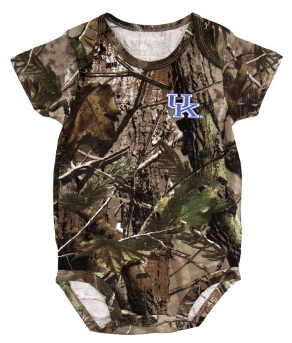 この愛らしいケンタッキー大学リアルツリー迷彩ボディスーツはあなたの小さなを開始するすべての事項のワイルドキャッツLOVEケンタッキー州、ハンティング刺繍されたケンタッキーのロゴとリアルツリーカモがワンジーが注目される。