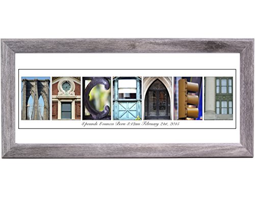 Personalizedベビーギフト名前Sign新生児のBoy or Girl with 8 by 20インチシェルフトップフレームとhanger-独占クリエイティブ手紙アート 12x26 inch w/ Mat グレー 1226girl200dw