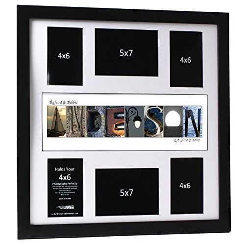 クリエイティブ手紙アートPersonalized Sign inビーチNautical関連アルファベット写真文字のパーソナライズされたギフト、結婚式、卒業式、記念日、赤ちゃん名前またはAny Occasion 20x20 Inch Collage ブラック bw2020custom350bk