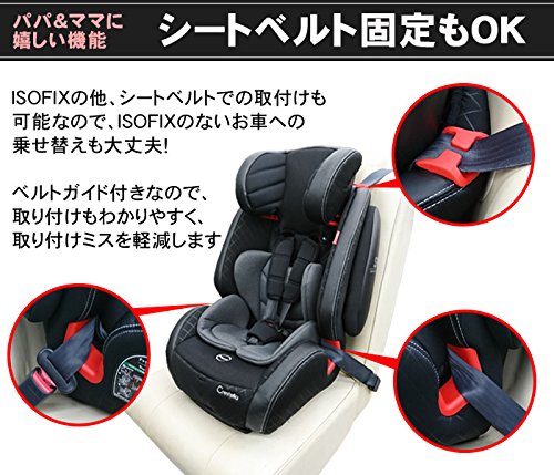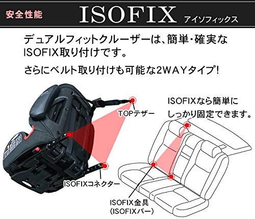 Crestella デュアルフィットクルーザー [ディアマンテブラックBK]+シート保護マット付 ジュニアシート チャイルドシート 1歳から使用可能 ISOFIX取付け または、シートベルト取付け