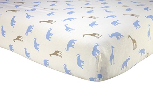 Sadie & Scout Safari Crib Sheet - Blue, Tan, Light Blue, Ivory