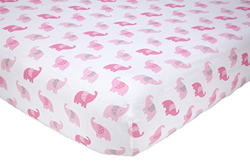 - Little Love by NoJo Separates Collection Elephant Printed Crib Sheet, Pink, 52 x 28