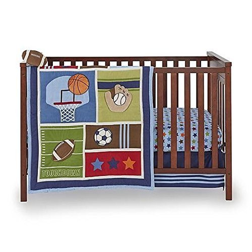 Sports Theme;Fits Standard Size Cribs;Includes Comforter, Crib Sheet, Dust Ruffle,Cuddle-Me Plush Toy;Machine Washable