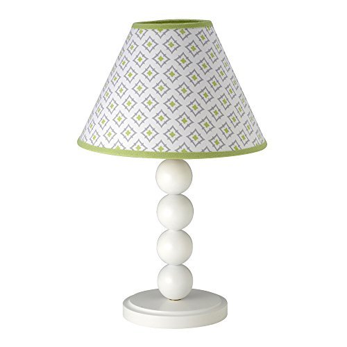Wendy BellissimoTM Honey Bee Lamp Base and Shade: Candlestick ball-stacked base; diamond-print shade in hues of gray, green and white;17 tall;on/off switch;uses type A 40W or smaller bulb, not included;cotton shade; wood base; spot clean
