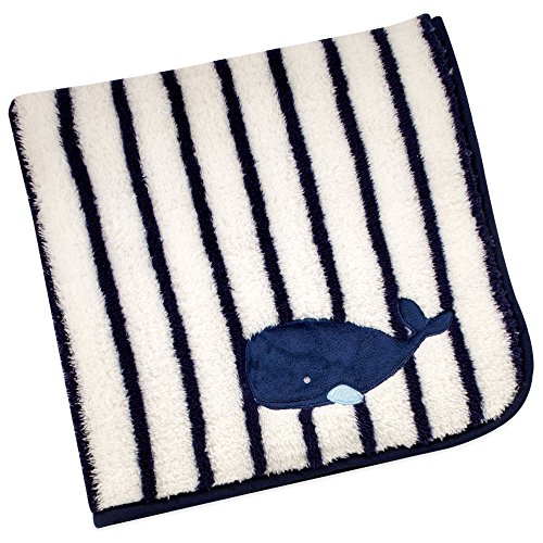 ブランケット機能クジラアップリケブルー青と白のストライプの背景であります。ゆったりしたサイズで構築された40 × 30インチと最後に表示してきました、この毛布は無限が必ず見つかりの使用の損失はなく、託児所の不足です。100 %ポリエステル製、洗濯機と乾燥した、をやってみたで作られて、色、テクスチャ、柔らかさ、プレミアム品質の生地、座標のクジラと嵐によってベビーベッド寝具コレクションノーティカ子供
