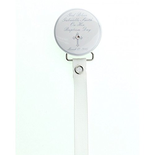 White Personalized Baptism, Christening Keepsake Pacifier Clip (RPER85_W) by Crystal Dream