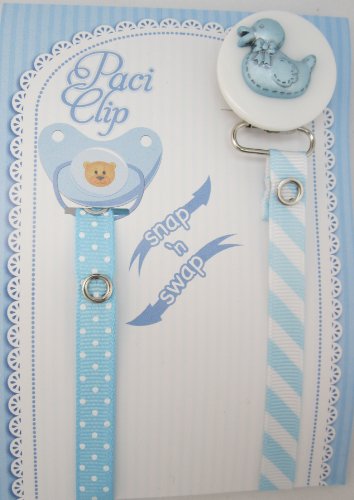 Ribbon Pacifier Clip, attaches to all Pacifier, Mam adopters available;Rust Free Clip, Never loose a Pacifier again, save your childs clip from Germs and dirt;2 Matching adorable interchangeable ribbons, wash 'em, snap 'em, swap 'em;Never Leave your child un-attended or placed to sleep while wearing clip, buyer assumes full responsibility;Quickley fastens to baby's clothing, for all ages, Smart Design enables one hand use