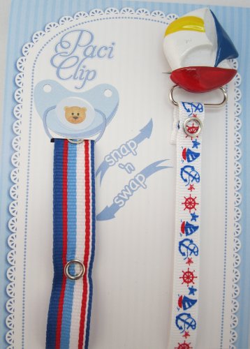 Ribbon Pacifier Clip, attaches to all Pacifier, Mam adopters available;Rust Free Clip, Never loose a Pacifier again, save your childs clip from Germs and dirt;2 Matching adorable interchangeable ribbons, wash 'em, snap 'em, swap 'em;Never Leave your child un-attended or placed to sleep while wearing clip, buyer assumes full responsibility;Quickley fastens to baby's clothing, for all ages, Smart Design enables one hand use