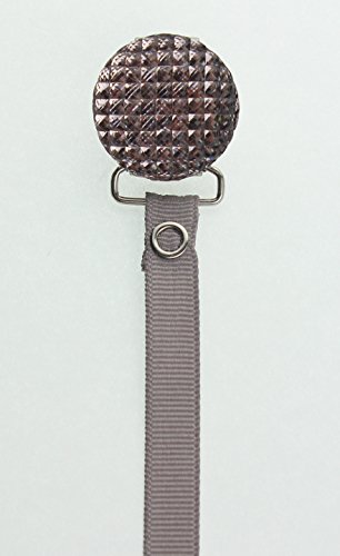 Grey Quilted Crystal Solid Ribbon Pacifier Clip by Crystal Dream