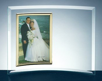 垂直湾曲したヒスイ色ガラスゴールドフォトフレーム(写真サイズ: 5 " X 7 " )