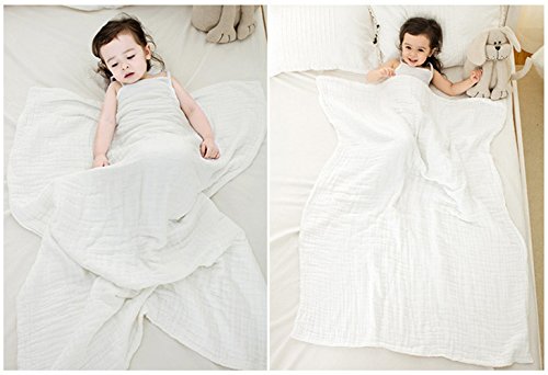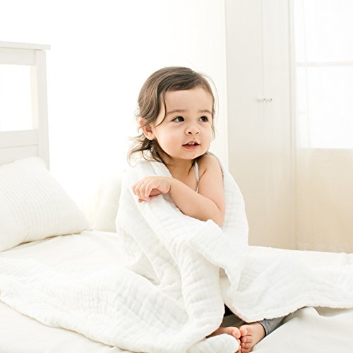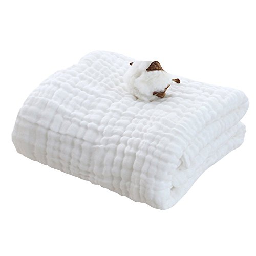 Cuby 6重ガーゼケット ベビーバスタオル タオルケット ベビーブランケット おくるみ (白 10層95*120cm)