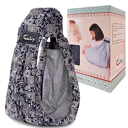 Cuby ベビースリング ベビーキャリア 抱っこひも 新生児 対象0~2歳 片肩 説明書あり (ブル花)