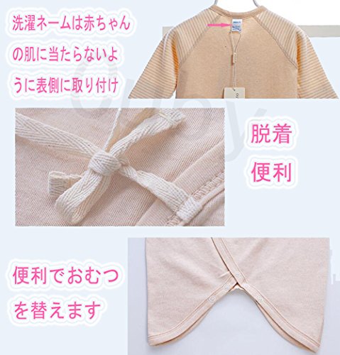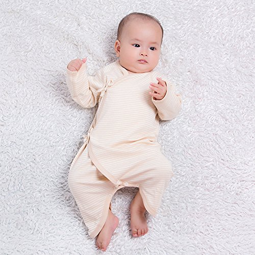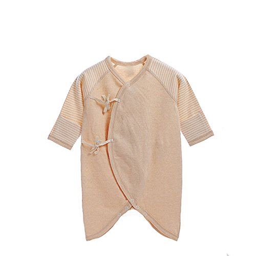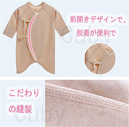 Cuby コンビ肌着 オーガニックコットン 優れた通気性 ベビー新生児用 ナイトウェア カバーオール (73cm, ブラウン)