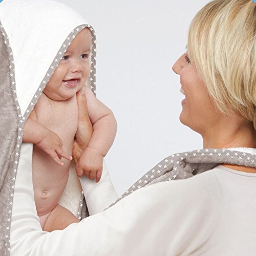 お風呂から、あなたの腕の中に、最も控えめで、最も自然な方法で。このタオルは巧みにあなたを乾燥させ、両手を自由にして赤ちゃんを水から持ち上げます - 同時に!フードを赤ちゃんの頭の上に置き、瞬時に暖かくて柔らかい豪華な竹と純粋な綿の二重の層に抱き込み、濡らさずに素敵な抱擁を与えることができます。シンプルで安全です。あなたとあなたの赤ちゃんをさらに近づけます。そして、あなたの人生で新しい小さな星のための縁を縁取って、この美しいソフトグレーの色で、それは最もスタイリッシュな新しい到着にも完璧です。