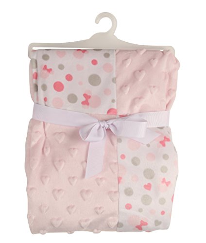 Disney Minnie Mouse Double Sided Mink Infant Blanket, Pink Patchwork with Hearts Popcorn by Disney