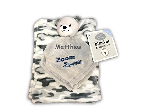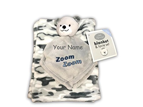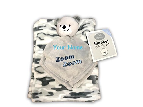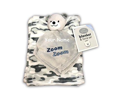 - 好みに合わせての名前でグレーとホワイトの迷彩始まりこの小さなブランケットとクマの優しくLovieブランケットセット選択です
