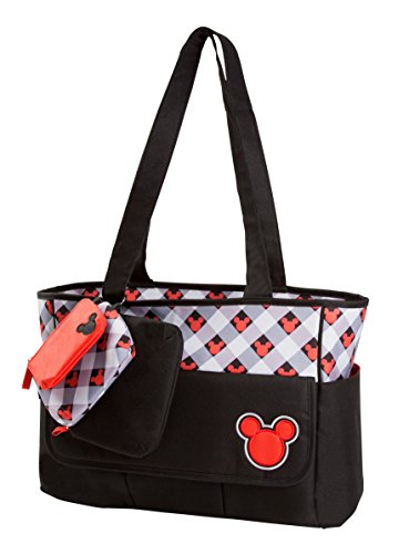 Disney Mickey Plaid Tote with Matching Zip Pouches, Red/Black by Disney