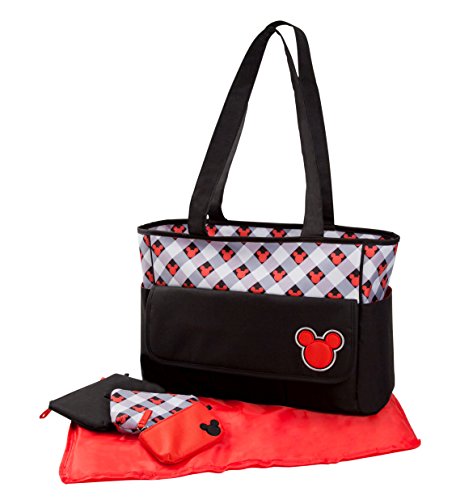 Disney Mickey Plaid Tote with Matching Zip Pouches, Red/Black