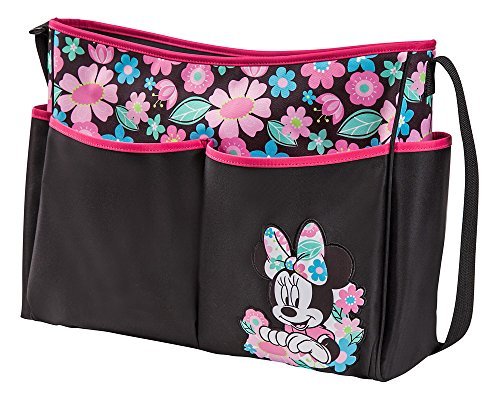 Disney Minnie Mouse Floral Print Large Hobo Diaper Bag, Black/Pink by Disney