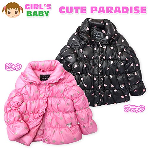- ・CUTE PARADISE・中綿ジャケット・フルジップ・裏タフタ・丸衿・シャーリング・リボン&ハート柄