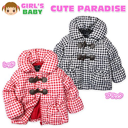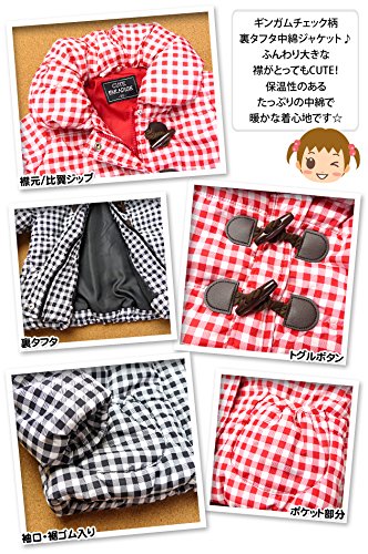 ベビー服 女の子 ジップ ジャケット 中綿 裏タフタ シャーリング ギンガムチェック トグル 女児 ベビー (2.ブラック/95cm)