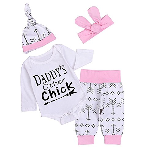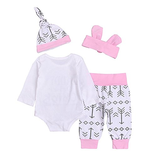 Cutelove 女の子 新生児 長袖シャツ+ロングパンツ+ヘッドバンド+帽子4点セット 花 春秋 ベビー服 幼児服セット