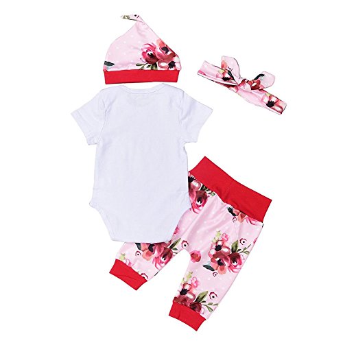 Cutelove 女の子 新生児 長袖シャツ+ロングパンツ+ヘッドバンド+帽子4点セット 花 春秋 ベビー服 幼児服セット