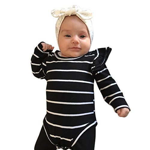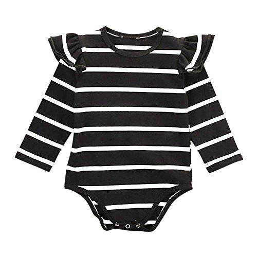 Cutelove クリーパー ジャンプスーツ オーバーオール ロングスリーブ 長袖 女の子 赤ちゃん 春 秋 ストライプ コットン 可愛い 普段着 ベビー服 チュチュ 開きスナップボタン