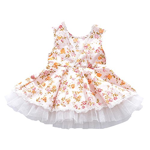 Cutelove 子供ドレス 花柄 ガールズ 女の子 綿 可愛い チュール 夏 キッズ ベビー おしゃれ ノースリーブ 素敵 ワンピース プリンセスドレス