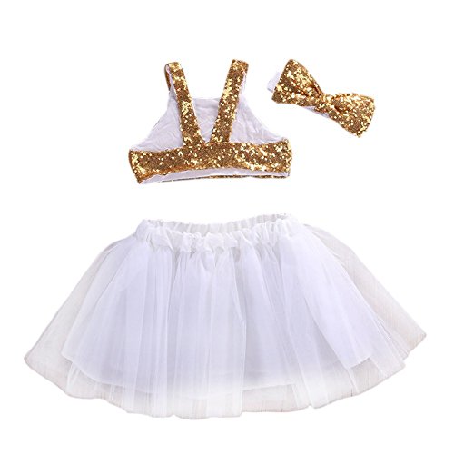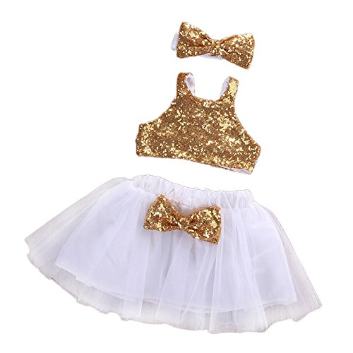 Cutelove 子供 キッズ 3点セット スパンコール ヘアバッド キラキラ スカート 蝶結び付き 紗 パーティー 素敵