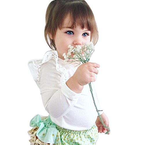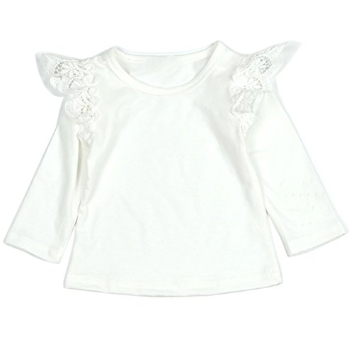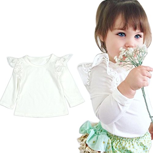 Cutelove ベビー長袖 Tシャツ 無地 キッズ服 ガールズ 秋 ロングスリーブ トップス コットン レース 可愛い