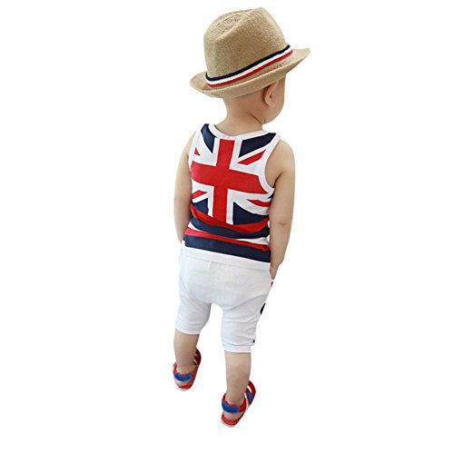 Cutelove 子供服 スーツ 二点セット タンクトップ ショートパンツ 英倫柄 男の子 夏 普段着 袖なし コットン かっこいい