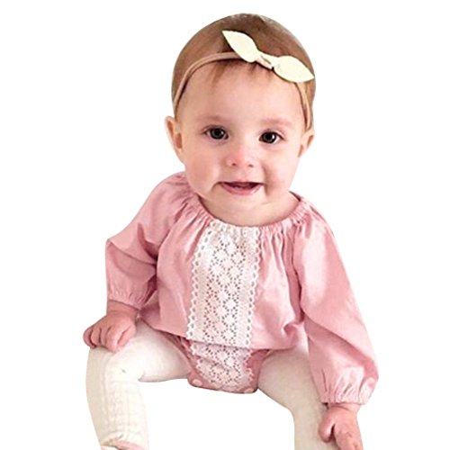 Cutelove 女の子 キッズ ベビー服 ピンク ベビースーツ ボディスーツ カバーオール ジャンプスーツ 長袖 レース ロンパース 秋 普段着 カジュアル 可愛い