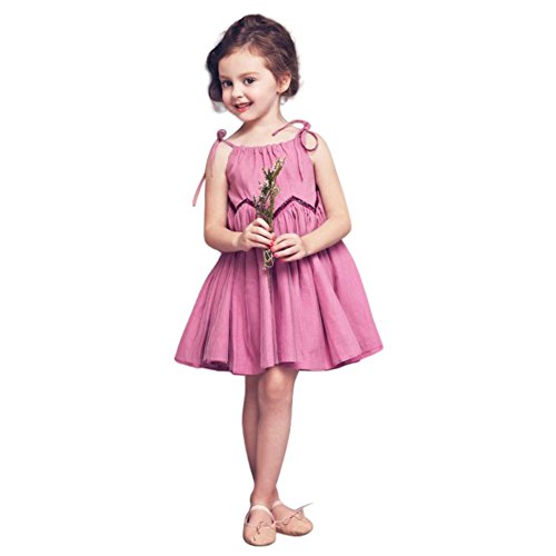 Cutelove 女の子 キッズ ベビー服 夏 お姫様ドレス ハーネスドレス キャミワンピース ピンク リネンナイトガウン 普段着 カジュアル プリンセス 欧米風 90%綿