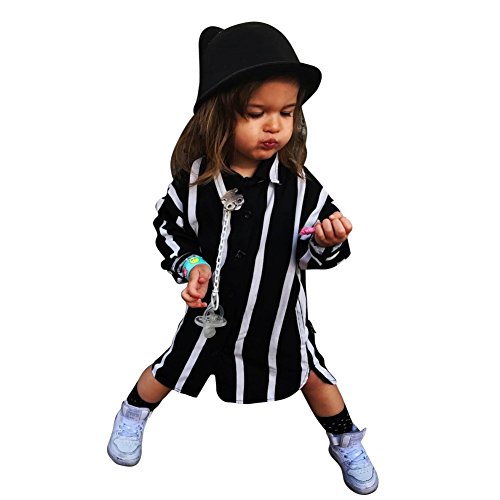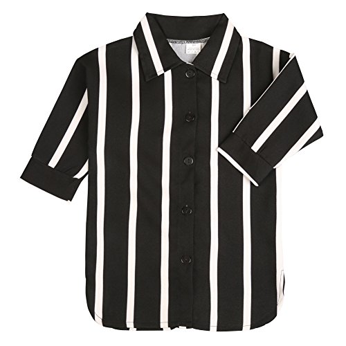 Cutelove 女の子 キッズ ベビー服 春夏秋 黒と白のストライプ カバーオール 長袖 スーツ シャツ 90%綿 欧米風 通気性