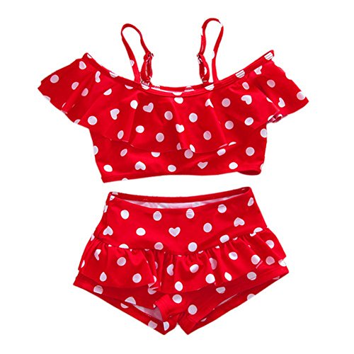 Cutelove 子供水着 キッズ ガールズ みずぎ 可愛い 夏 心柄 ドット柄 キャミ スカート 2点セット