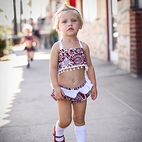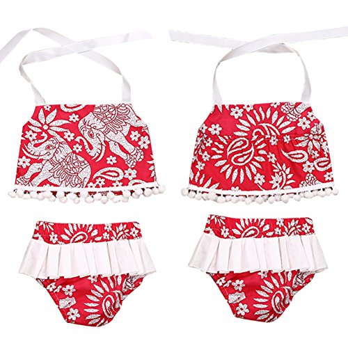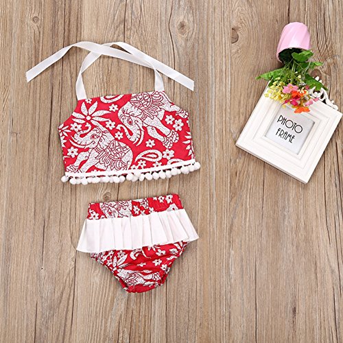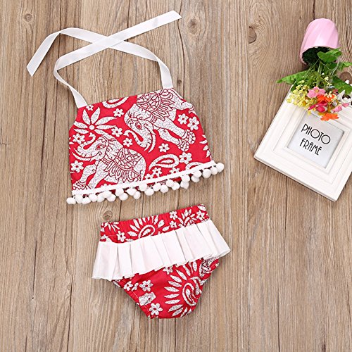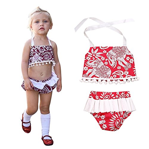 Cutelove 2017年新品 夏 女の子 キッズ 子供水着 ビキニ みずぎ 花柄 象柄 プリント キャミ ショートパンツ 2点セット コットン 可愛い