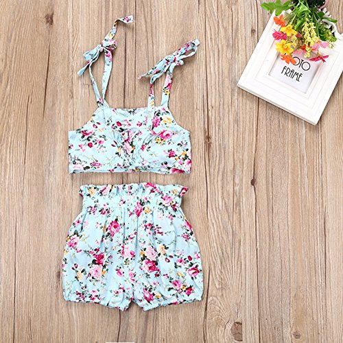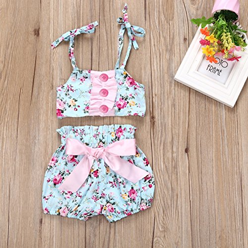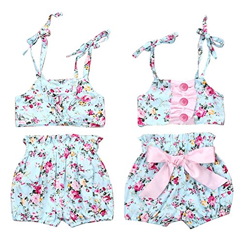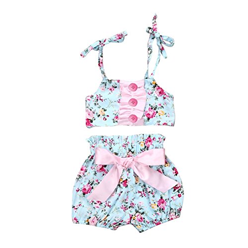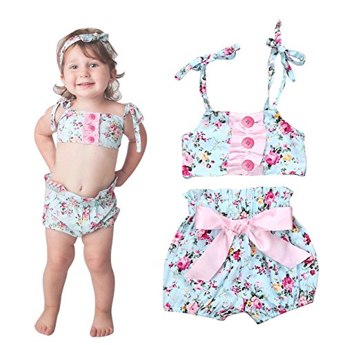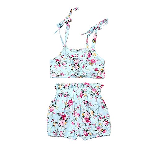 Cutelove 2017年新品 夏 女の子 キッズ 子供水着 ビキニ みずぎ 花柄 蝶結び付き キャミ ショートパンツ 2点セット コットン 可愛い