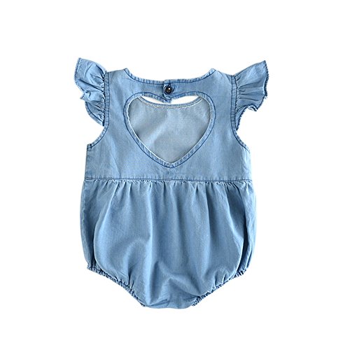 Cutelove 子供服 ロンパース カバーオール 女の子 夏 デニムカバーオール 中空のハート形 可愛い 袖なし ベビー おしゃれ