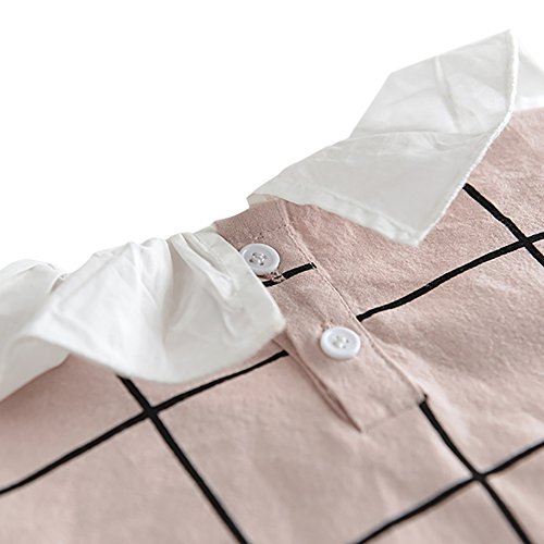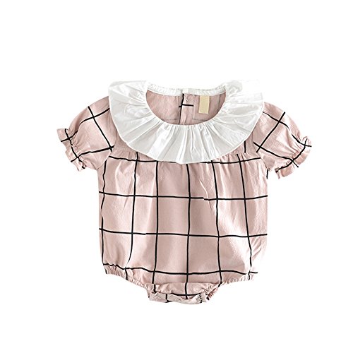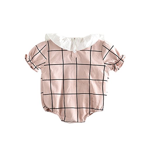 Cutelove 子供服 ロンパース カバーオール ガールズ 女の子 夏 可愛い 格子柄 半袖 蓮の葉の襟 ベビー 幼児 おしゃれ