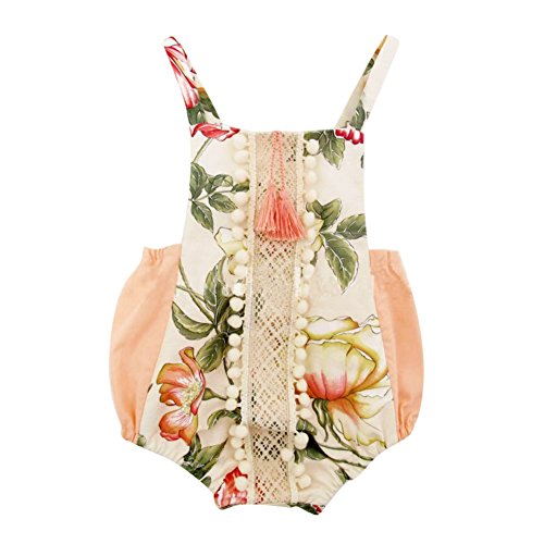 Cutelove 子供服 ロンパース カバーオール 夏 可愛い サスペンダーカバーオール レース 蓮の葉柄 袖なし ベビー 女の子 幼児 おしゃれ
