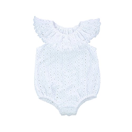 Cutelove 子供服 ロンパース カバーオール 夏 可愛い 蓮の花の襟 袖なし ベビー 女の子 幼児 おしゃれ ホワイト