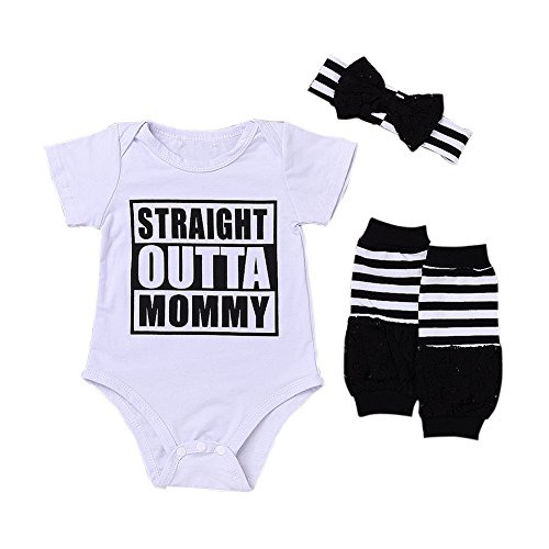 Cutelove 赤ちゃん ヘッドバンド付き ボディスーツ ロンパース 3点セット レガーズ 男の子 女の子 夏