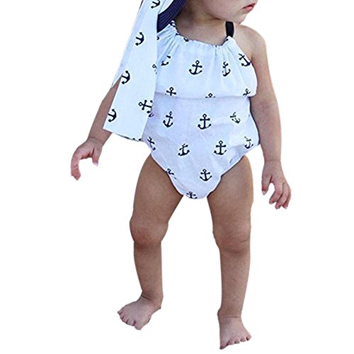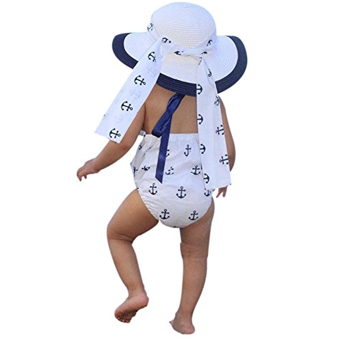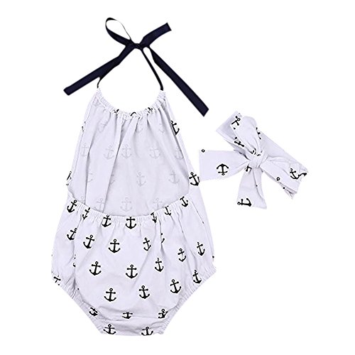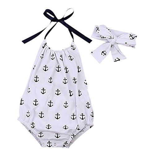 Cutelove 子供服 ロンパース カバーオール ロンパース&ヘッドバンド 夏 可愛い 袖なし アンカープリント 女の子 新生児 おしゃれ