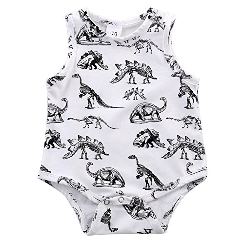 Cutelove ベビー服 新生児 赤ちゃん 男女兼用 ボディスーツ ロンパース ノースリーブ 夏 プリント 恐竜 綿100% おしゃれ