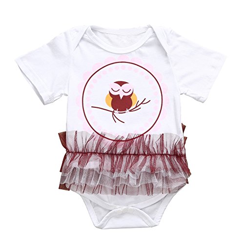 Cutelove 子供服 ロンパース カバーオール 小鳥柄 女の子 幼児 キッズ レース飾り 可愛い 半袖 夏 出産祝い ホワイト