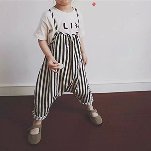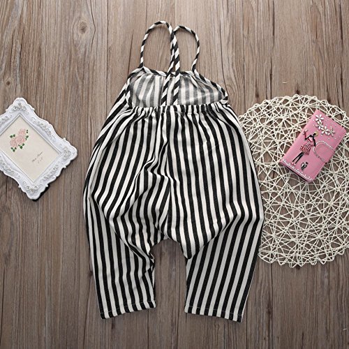 Cutelove 2017年新品 夏 子供服 女の子 キッズ スリングキュロット 半袖 黒と白のストライプ ボディスーツ カバーオール ロンパース コットン 欧米風